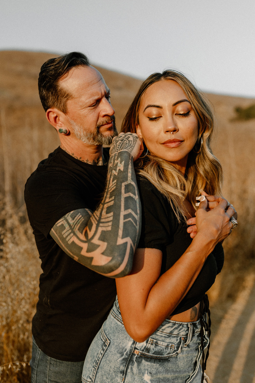 If you know me, I love taking air mattresses to random places and plopping my couples on them! After I photographed these two in a tropical paradise, I found an open field right around the corner, and we switched up the vibe. They got dressed up in their denim, black, and matching Converse and brought the fun, flirt, and steam!